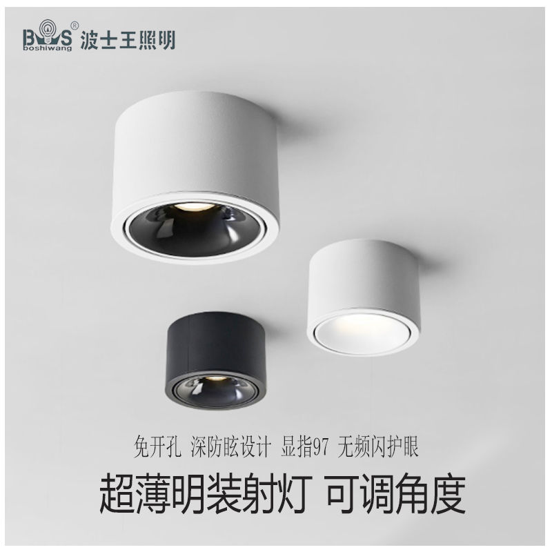 明装射灯 M716GH超薄 可调角度 明装超薄深防眩射灯 高端定制 高纯度全铝压铸灯体 超薄款 可调角度 灯体颜色可选全黑/全白/白+黑色 默认普瑞光源 显色指数95 光束角度默认36度 色温可选 内置恒流恒压隔离驱动 色温可选 支持可控硅/0-10V/涂鸦/米家/天猫精灵/小度...智能定制