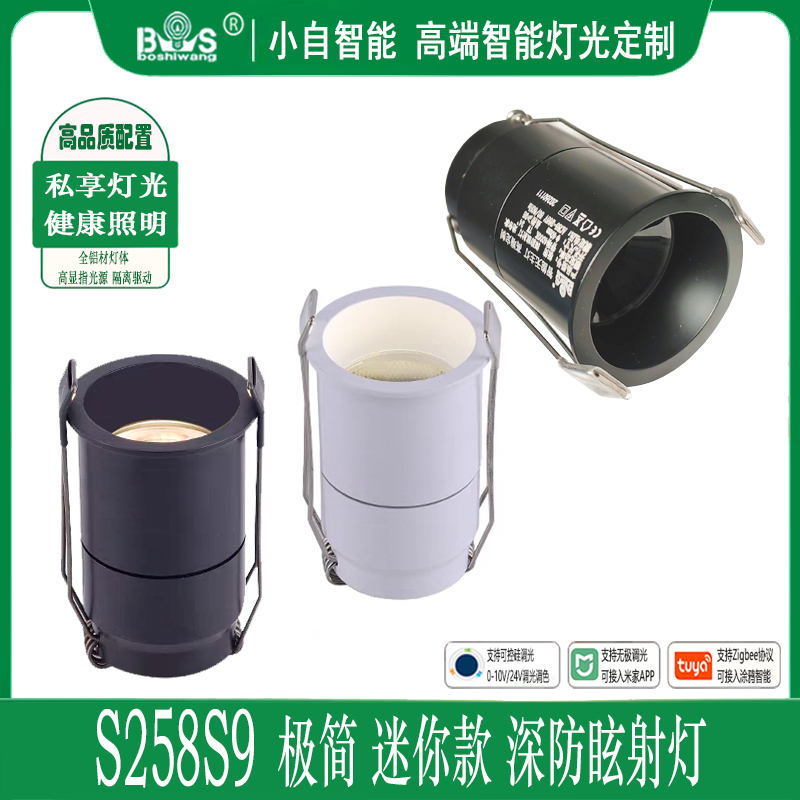 深防眩射灯 S258S9极简 迷你射灯 高纯度全铝压铸灯体 全黑/全白灯体 色温可选 外置隔离驱动 支持定制