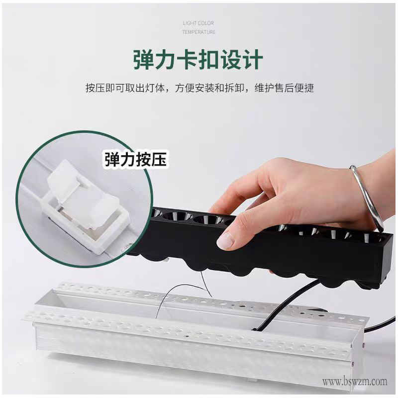 格栅线条灯 X102S1玲珑 预埋无边弹压款 高端定制 高纯度压铸铝材灯体 可选嵌入式/无边框按压弹压式 欧司朗3030光源 显指>97 色温可选 发光角度30度 外置隔离IC驱动电源 支持可控硅/0-10V/涂鸦/米家/天猫精灵/小度...智能定制