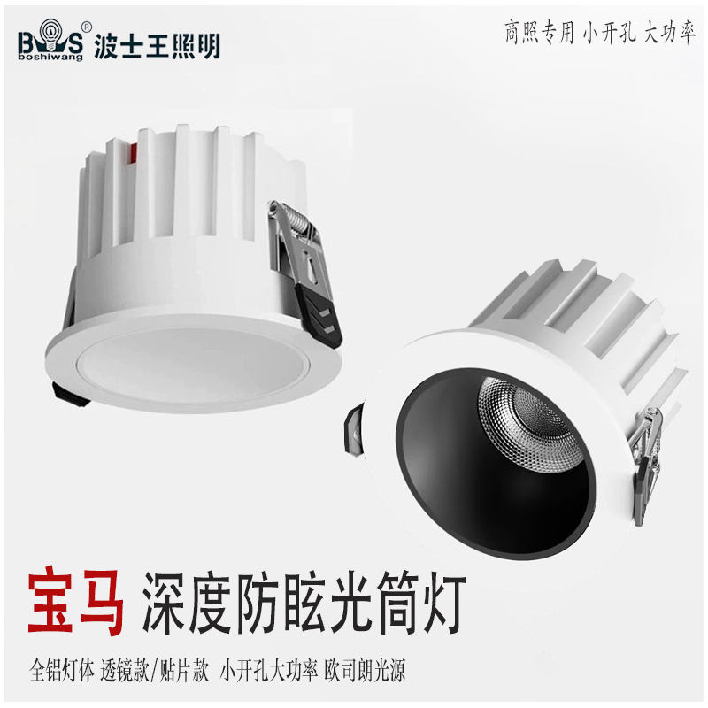 深防眩筒灯 T324HH宝马 商照款 大功率 高端商照款 高纯度优选铝材灯体 双重深度防眩光射灯 可选筒灯款/透镜款 灯体颜色可选砂白色/砂黑色 光束角可选15/24/36/50度 反射罩可选哑黑/哑白/枪黑杯 默认欧司朗光源 色温可选 外置隔离恒流驱动 支持可控硅/0-10V/涂鸦/米家/天猫精灵/小度...智能灯光定制
