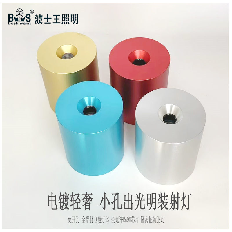 明装射灯 S5024MG电镀 小孔出光 高纯度全铝材灯体 灯体电镀颜色可选 发光角度可选24/36度 默认普瑞全光谱Ra98光源 色温可选 外置隔离IC恒流驱动 支持可控硅/0-10V/涂鸦/米家/天猫精灵/小度...智能定制