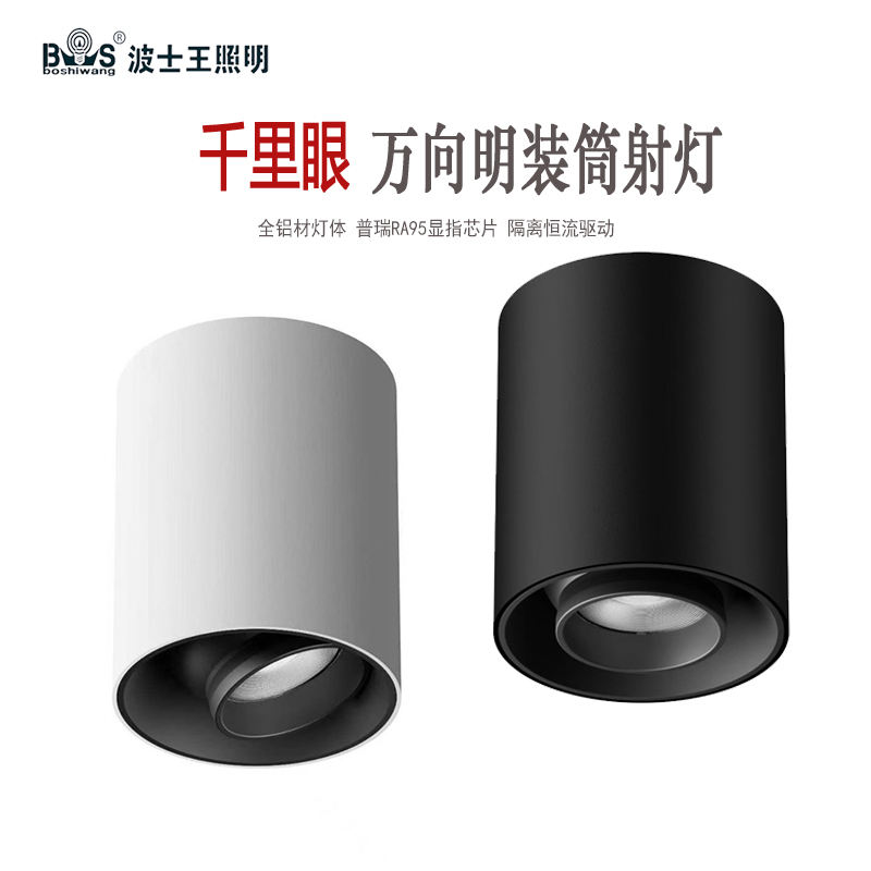 明装射灯 M723S1千里眼 万向可调款 高端定制 高纯度全铝材压铸灯体 可选砂白+白杯/砂白+黑杯/砂黑+黑杯款 万向可调角度 发光角度可选24/36度 默认普瑞高显指光源 内置隔离恒流恒压IC驱动电源 色温可选 支持可控硅/0-10V/涂鸦/米家/天猫精灵/小度...智能灯光定制