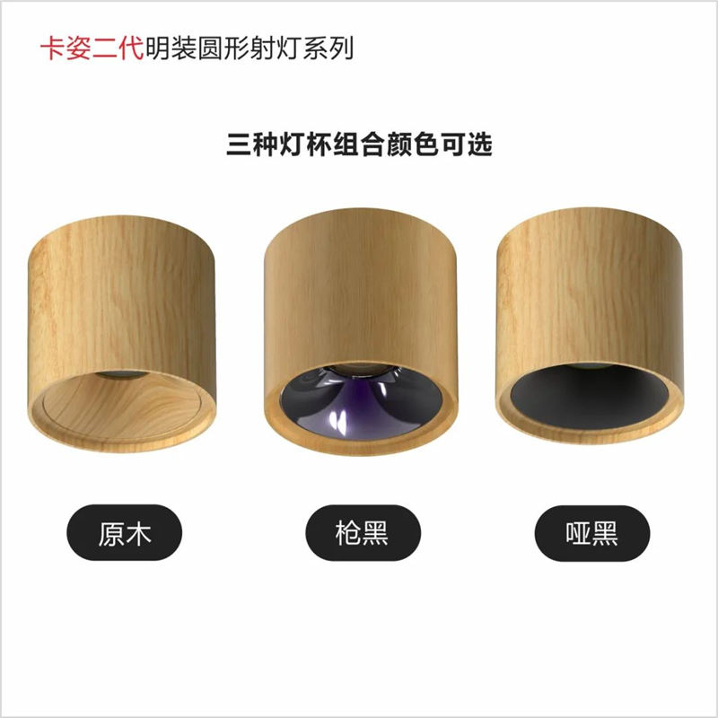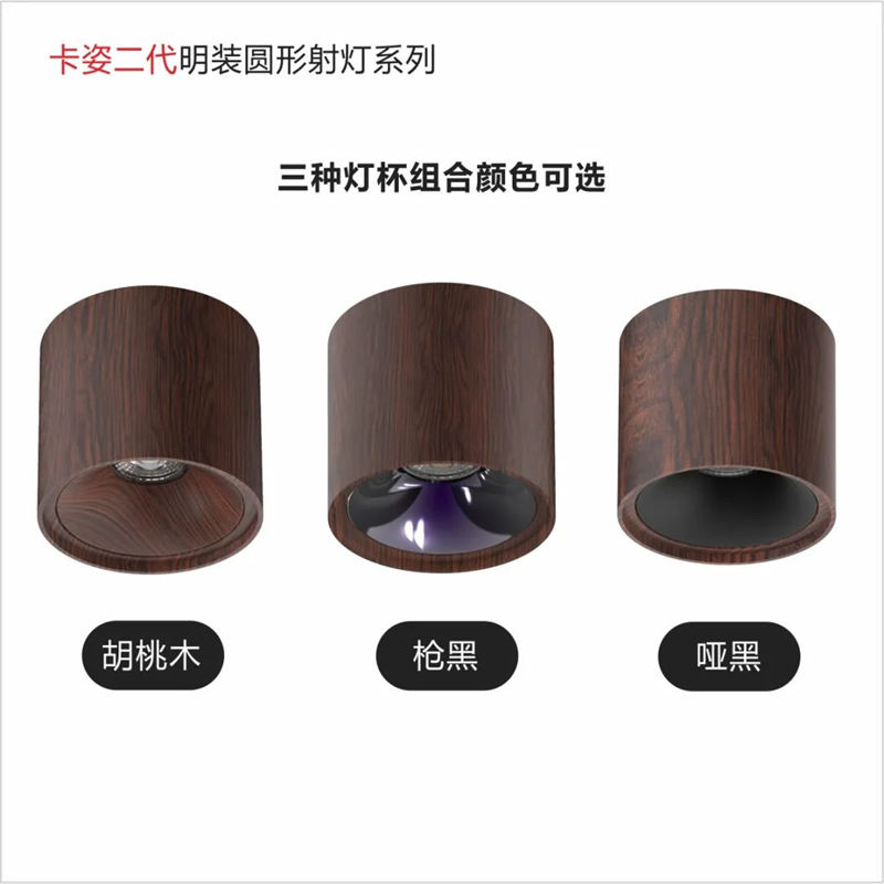 中古风 卡姿二代 明装圆形射灯/感应射灯 高端定制 高纯度全铝材压铸灯体 水转印工艺 胡桃木色/原木色灯体 不可调角度 光束角可选15/24/36/60度 默认普瑞高显指光源 色温可选 隔离IC恒流驱动 支持可控硅/0-10V/涂鸦/米家/24V集控...智能灯光定制