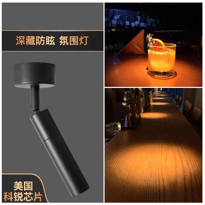 深防眩 灯体Ø30*H100mm 明装吸顶款 科锐光源 隔离3W驱动 光束角8度聚光 支持定制