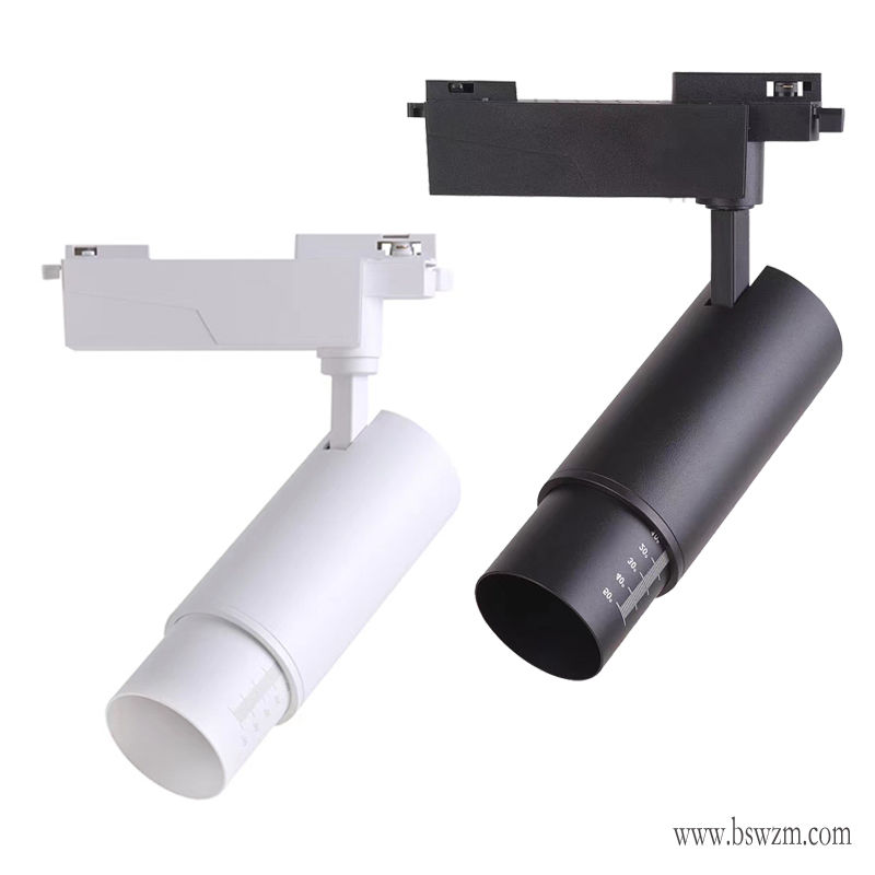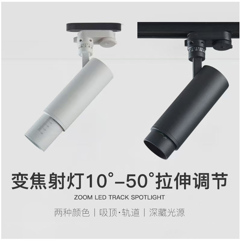 全铝型材 变焦射灯led轨道灯家装商用店铺可聚光散光明装COB调焦导轨灯照画 高纯度全铝压铸灯体,可选沙白/砂黑款,发光角度可调10-50° 色温配置可选 支持定制
