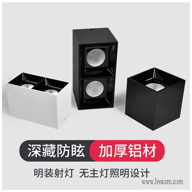 明装射灯 M702M1魔方 深防眩射灯 高品质单头双头明装射灯家用方形走廊过道天花灯 高纯度全铝压铸外壳 灯体颜色可选全黑款/全白/白+黑款 格锐光学 发光角度默认24度 支持定制 色温可选