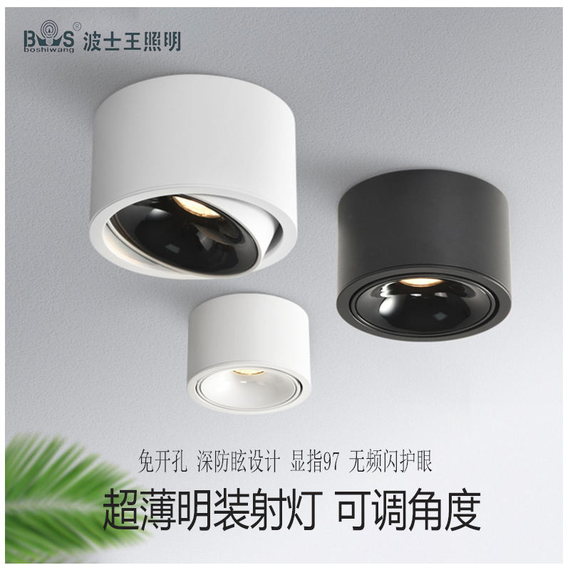 明装射灯 M716GH超薄 可调角度 明装超薄深防眩射灯 高端定制 高纯度全铝压铸灯体 超薄款 可调角度 灯体颜色可选全黑/全白/白+黑色 默认普瑞光源 显色指数95 光束角度默认36度 色温可选 内置恒流恒压隔离驱动 色温可选 支持可控硅/0-10V/涂鸦/米家/天猫精灵/小度...智能定制