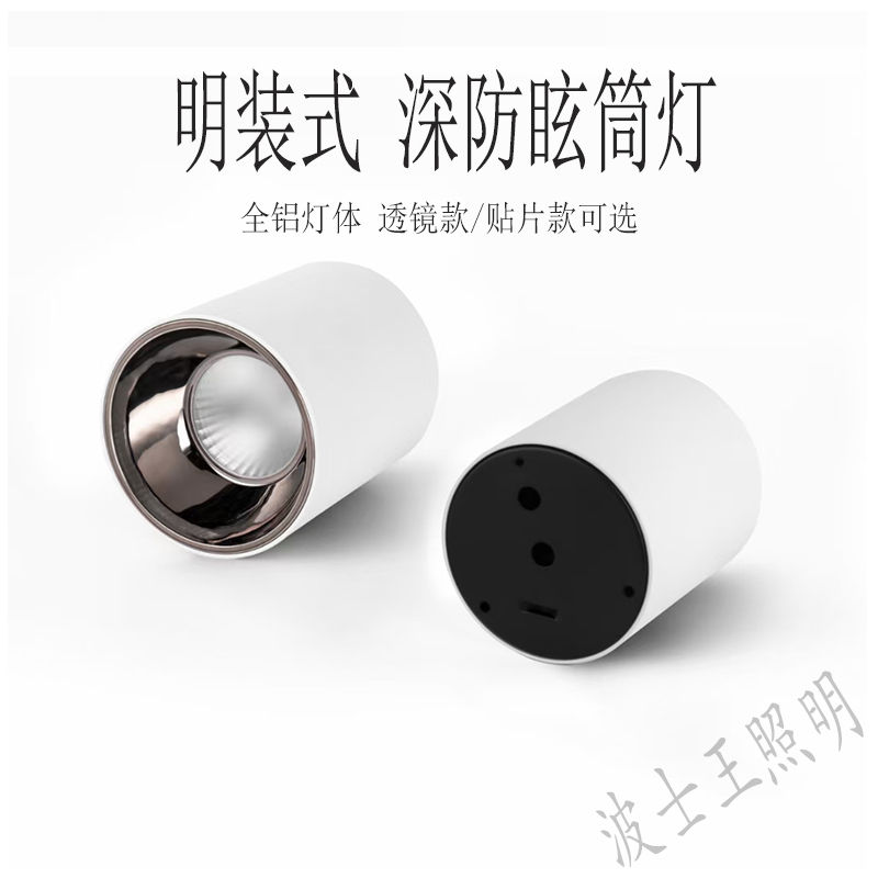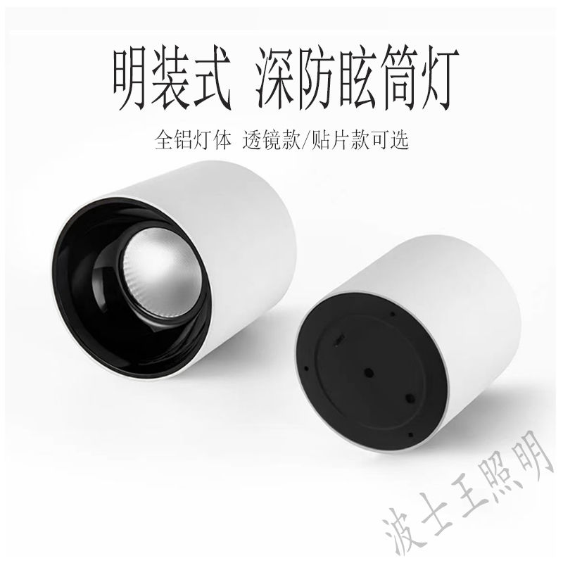 工程款 压铸全铝 深防眩射灯 规格可选 明装式筒射灯 高纯度全铝灯体 颜色可选砂白/黑色 表面喷粉工艺 灯杯颜色可选 色温可选 支持智能定制