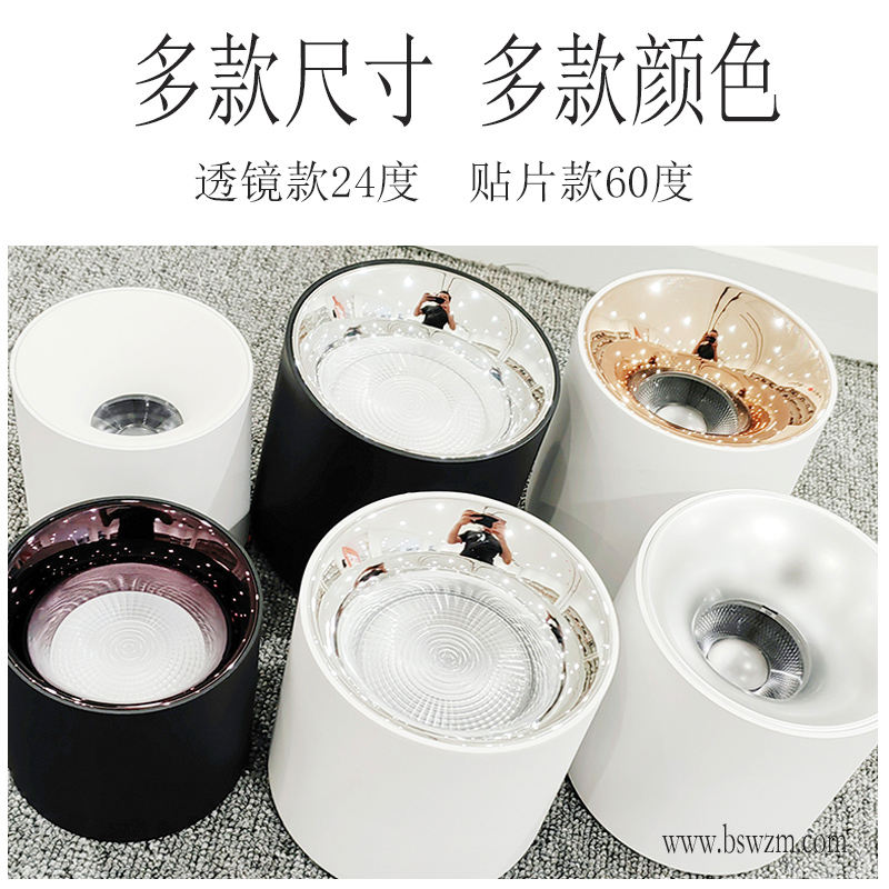 明装筒灯 M720M1亮剑 透镜/贴片款 可选透镜款/贴片款 高纯度全铝压铸外壳 颜色可选沙黑/沙白灯体 默认枪黑杯(可选哑光白、哑光黑、雾银、亮银、玫瑰金杯) 透镜射灯款24度 贴片筒灯款60度 色温可选 支持智能定制