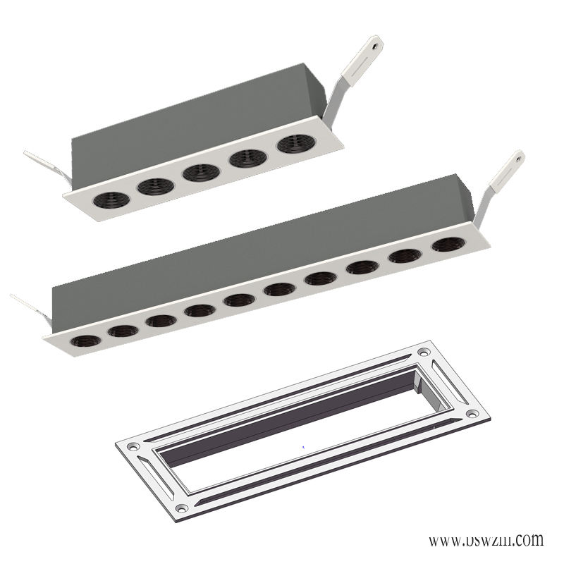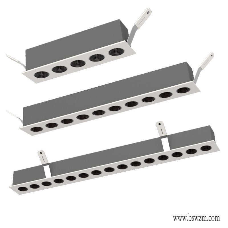 线条灯 X126YD蝶影 格栅线条灯 高端定制款 高纯度压铸铝材 白色灯体 可选有边款/无边预埋款 黑色反光杯 防眩光透镜发光角度24度 默认欧司朗COB光源 外置隔离驱动 支持可控硅、0-10V、涂鸦、米家无线智能定制...无边款单配面环,直接将灯具连同弹片卡入预埋件内即可