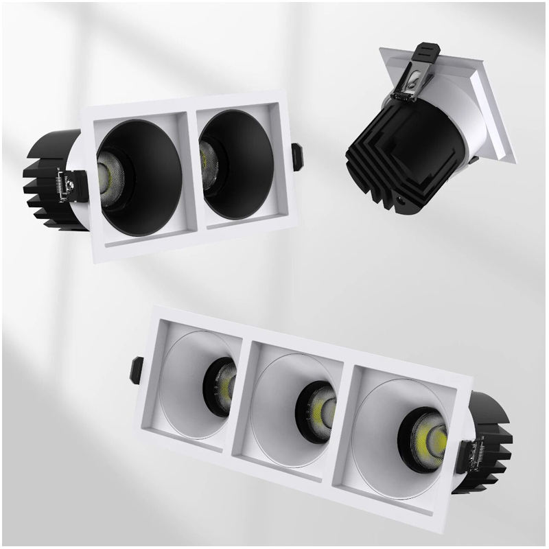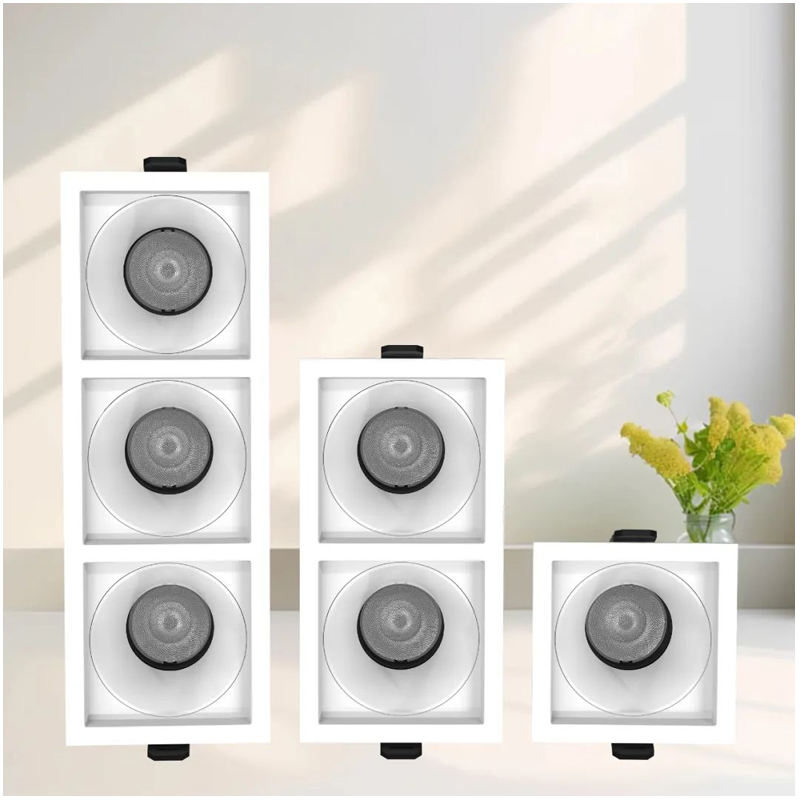 深防眩射灯 S2005YX鸿蒙 方形射灯 高端定制 高纯度全铝灯体 白色+肤感漆灰色全铝散热器 深度防眩光设计 可选有边/无边/小孔出光/弧面/方形款 悬浮透镜 可调角度 反光杯可选哑白/哑黑/亮银/枪黑杯 西朗德光学透镜 光束角可选15/24/36/50度柔光透镜 可定36度硬光洗墙透镜/3度6度小角度透镜 默认高显指普瑞光源 外置隔离IC恒流驱动 支持24V集控/可控硅/0-10V/涂鸦/米家/天猫精灵/小度...智能定制