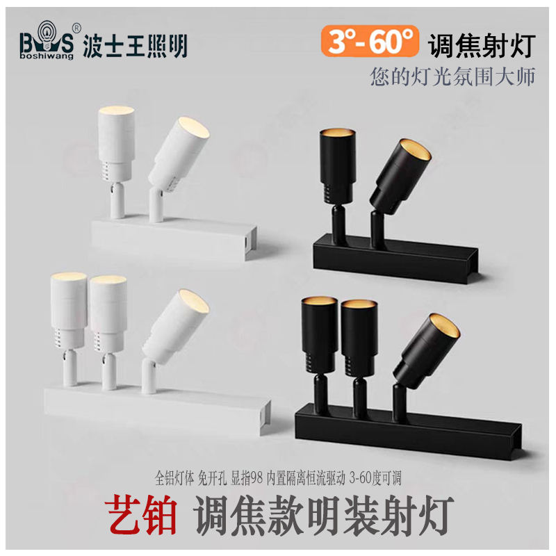 明装射灯 S5031YT艺铂 调焦款 高端定制 高纯度全铝材灯体 灯体喷粉工艺处理 颜色可选全黑/白+黑 发光角度3-60度可调焦 默认普瑞全光谱Ra98光源 色温可选 外置隔离IC恒流驱动 支持可控硅/0-10V/涂鸦/米家/24V集控...智能灯光定制