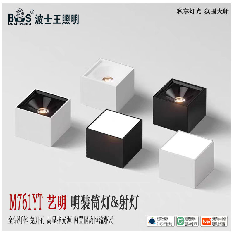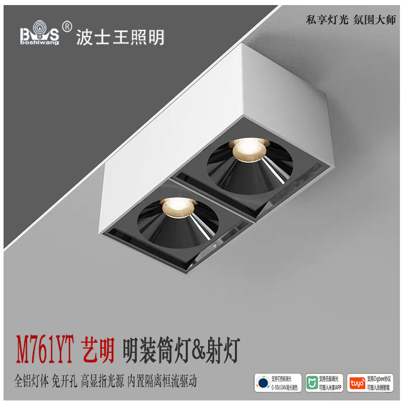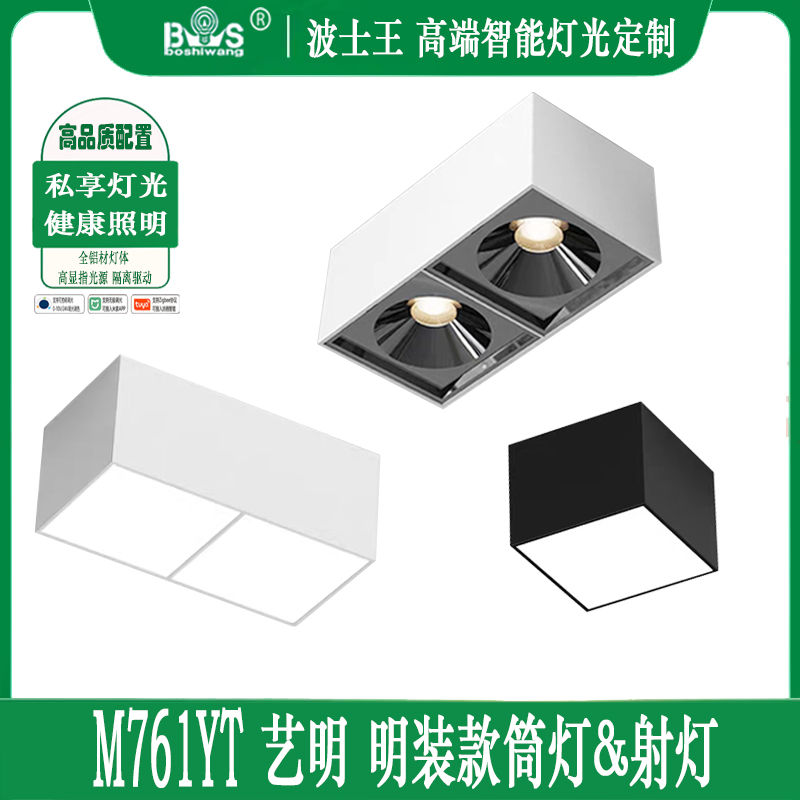 明装筒射灯 M761YT艺明 方形单头/双头 高端定制 高纯度全铝材灯体 灯体喷粉工艺处理 颜色可选全黑/白+黑色/全白款 光束角射灯款15/24/36度 筒灯款120度 默认普瑞全光谱高显指光源 色温可选 内置隔离IC恒流驱动 支持可控硅/0-10V/涂鸦/米家/24V集控...智能灯光定制